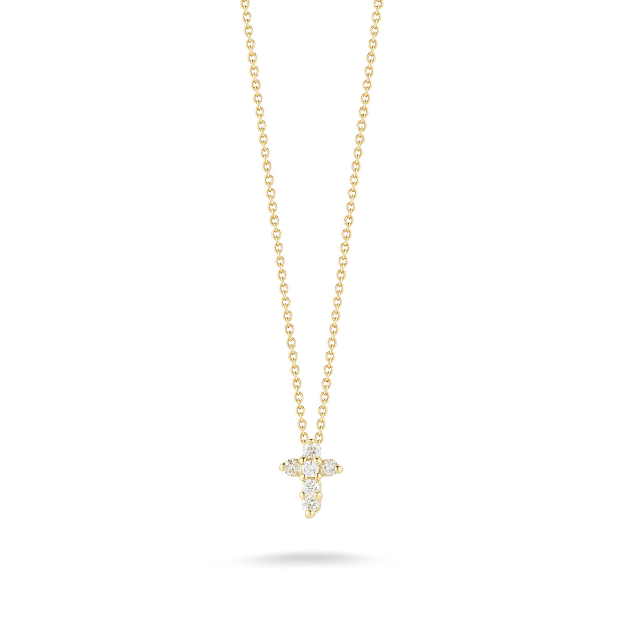 Tiny Treasures cross pendant with 0.20ct diamonds, crafted in 18K yellow gold on an 18 inch chain.