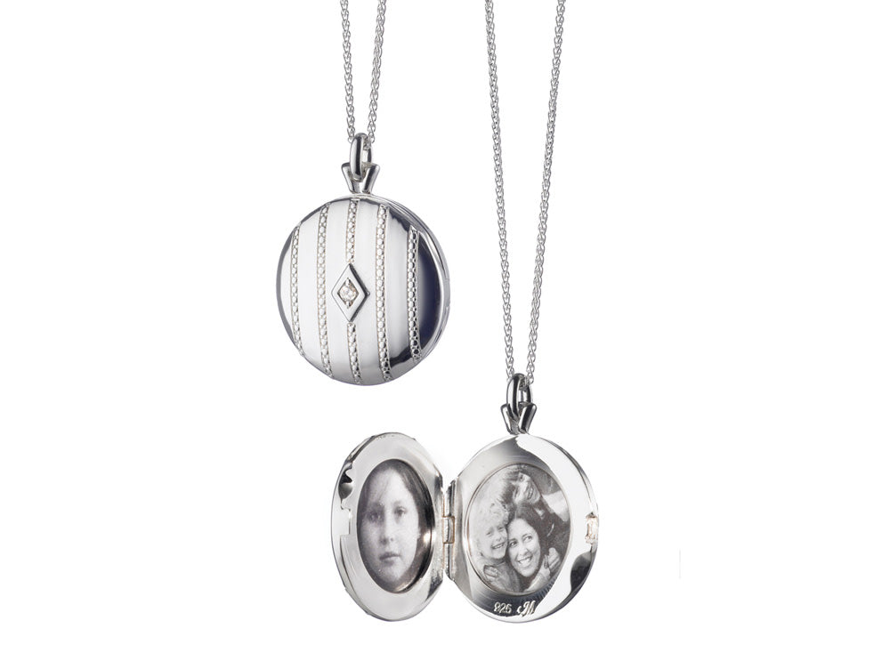 0.06Ct Diamond Beaded Stripes Locket on Chain in Sterling Silver, 30in