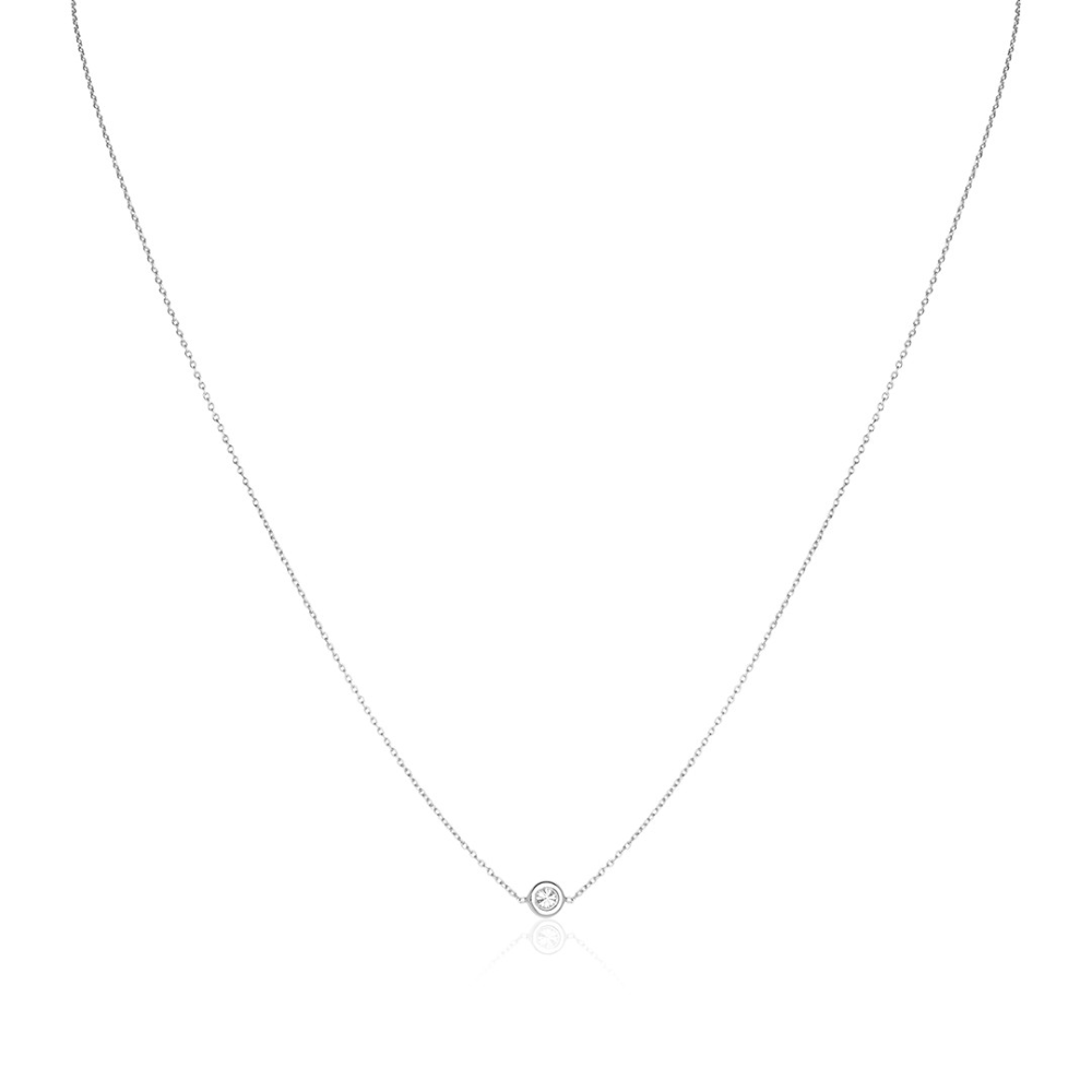 This elegant necklace features a stunning 0.10ct round diamond eyelet set in 18K white gold. The intricate design and high-quality materials make it a timeless addition to any jewelry collection. The diamond's eye-catching sparkle and durable setting make it perfect for everyday wear or special occasions.