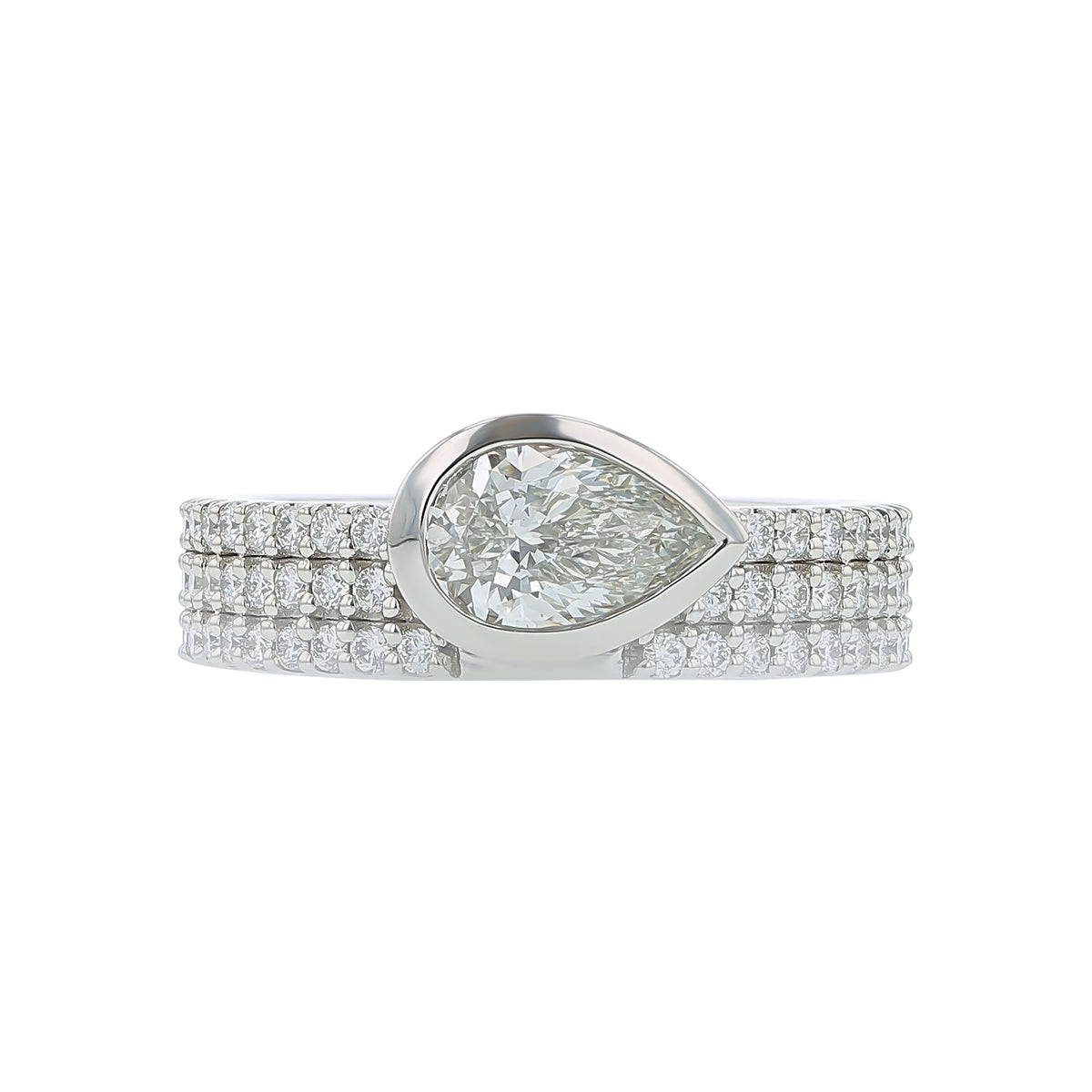 0.69ct diamonds east-west bezel set ring semi mount crafted in platinum. Fits a 1.20ct pear center. Semi mount only.