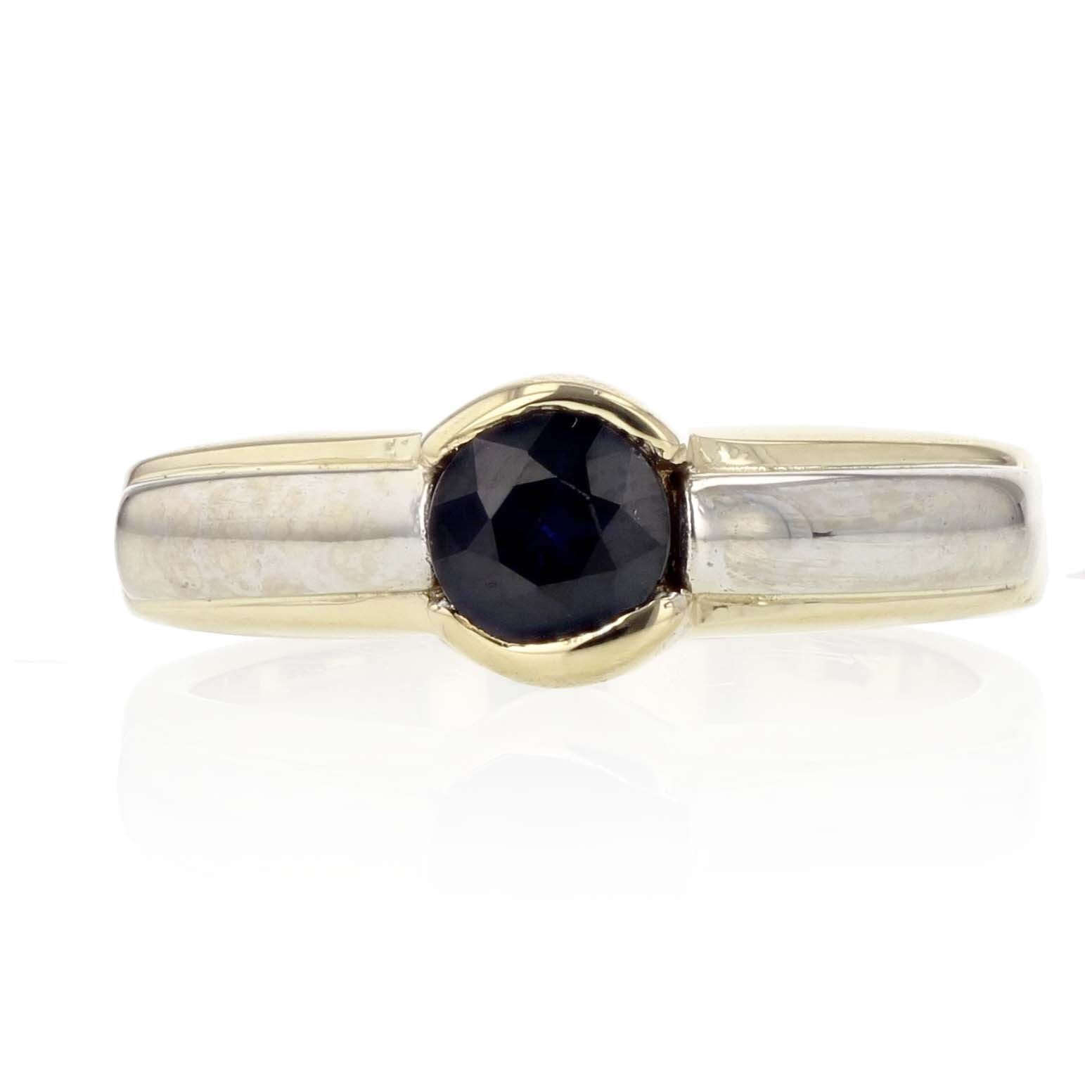 0.75ct round sapphire ring set in 14K yellow and white gold.