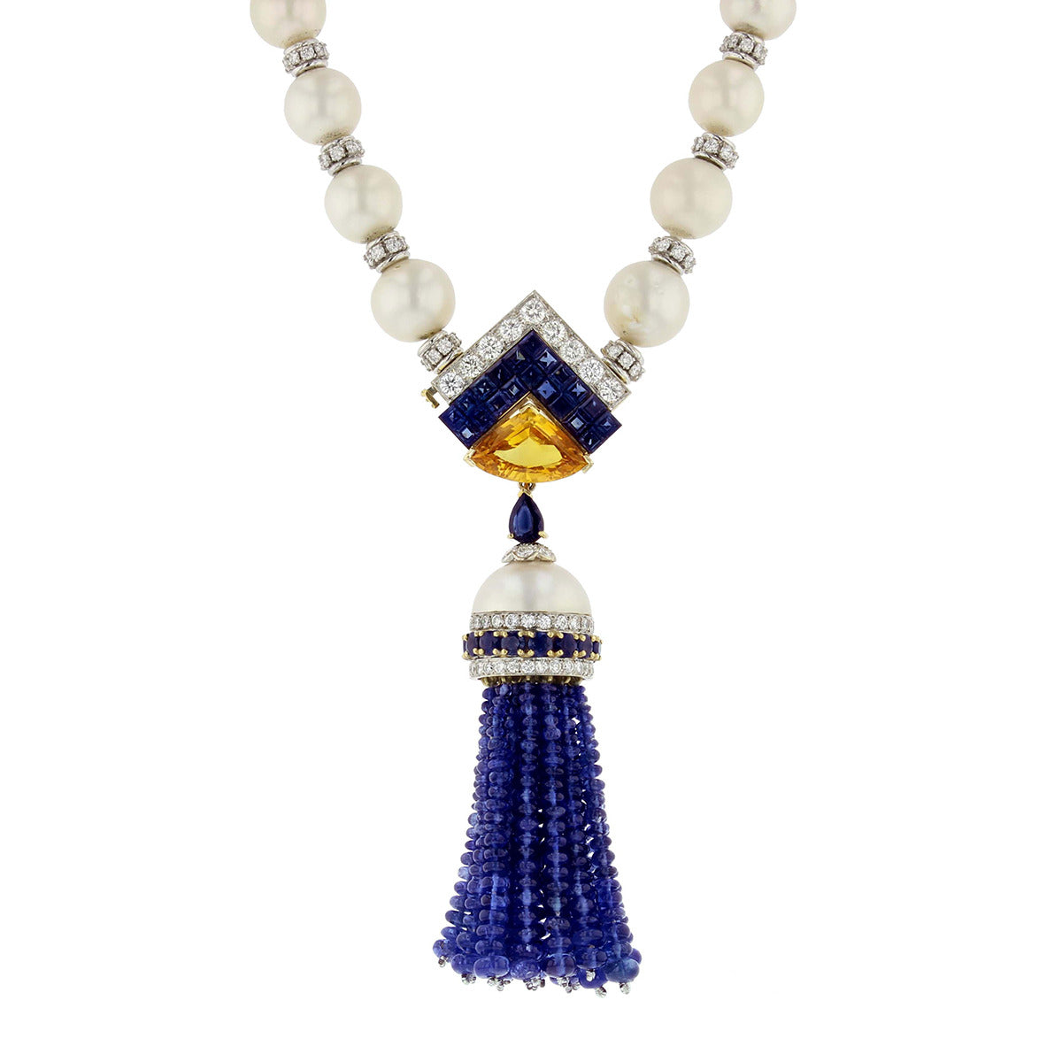 18K Pearl, Sapphire and Diamond Tassel Necklace