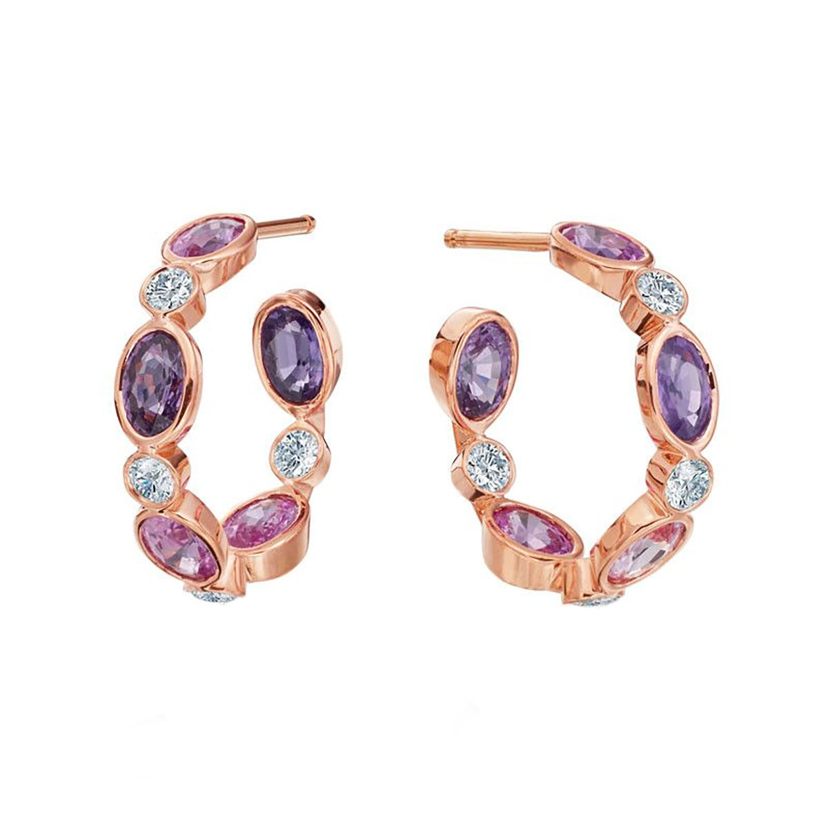 18K Rose Gold Diamond Sapphire Hoop Earrings