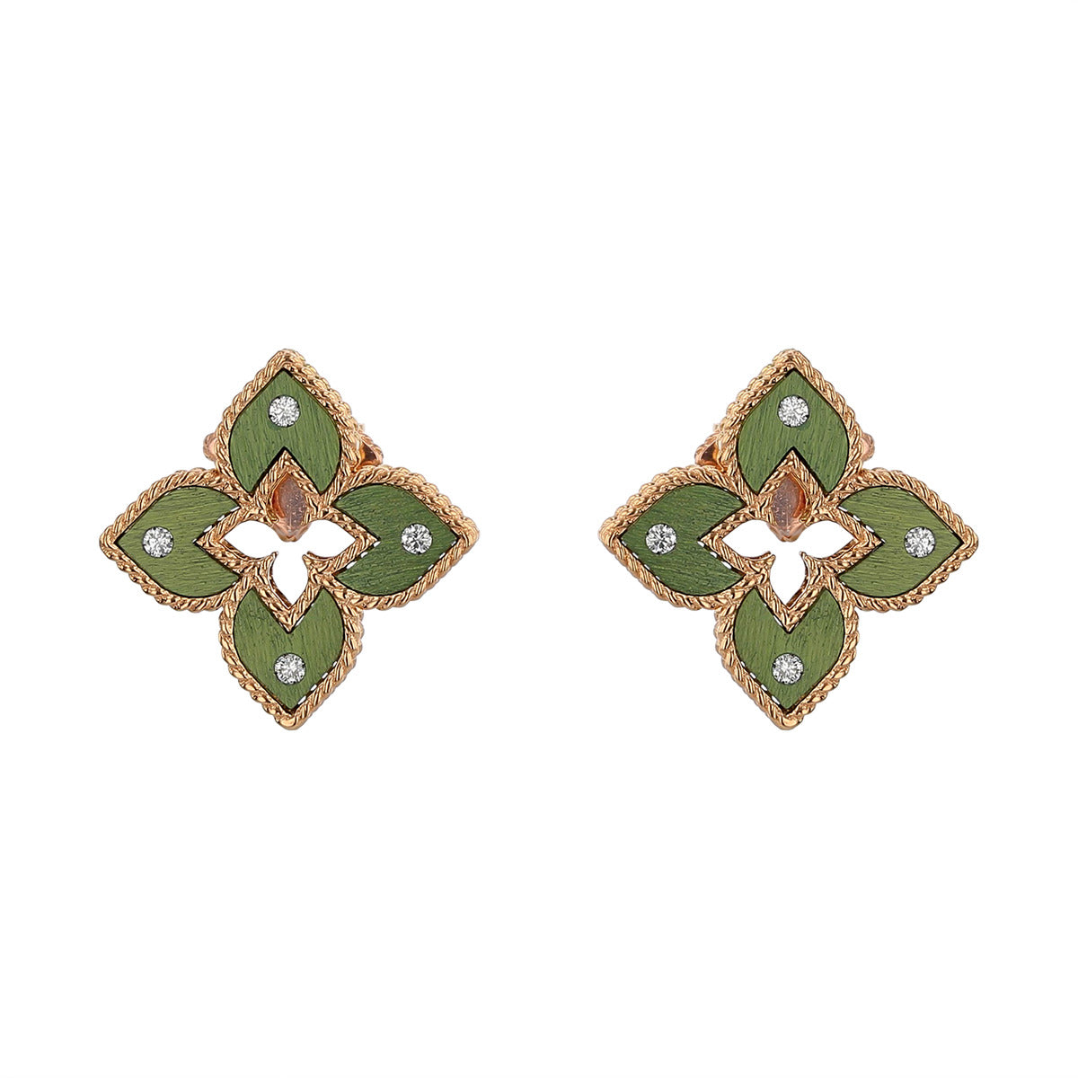 18K Rose Gold Mini Green Titanium and Diamond Flower Stud Earrings