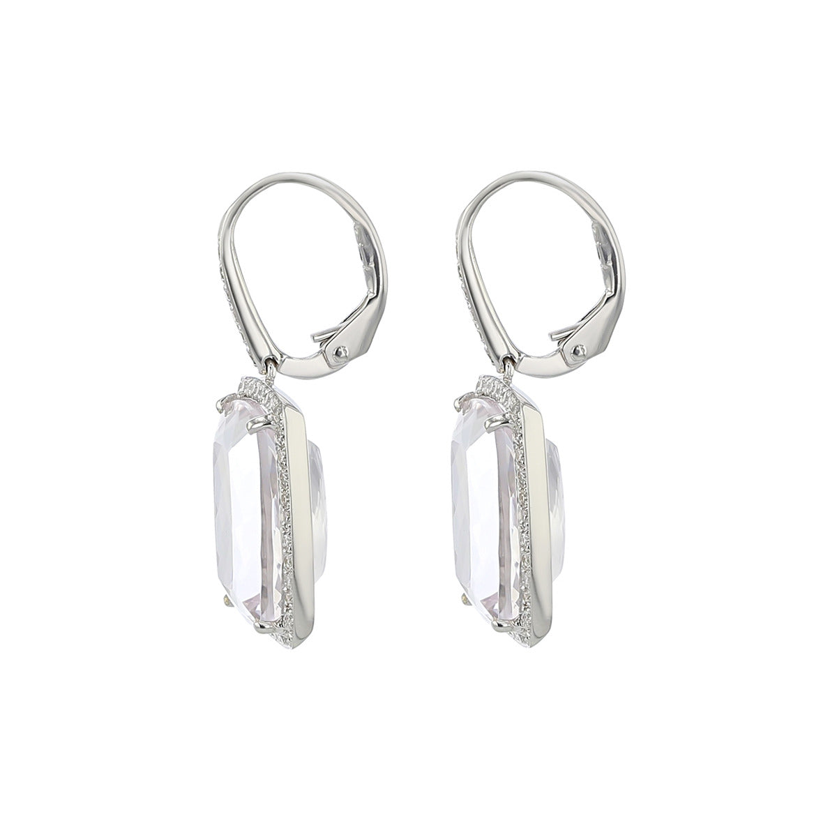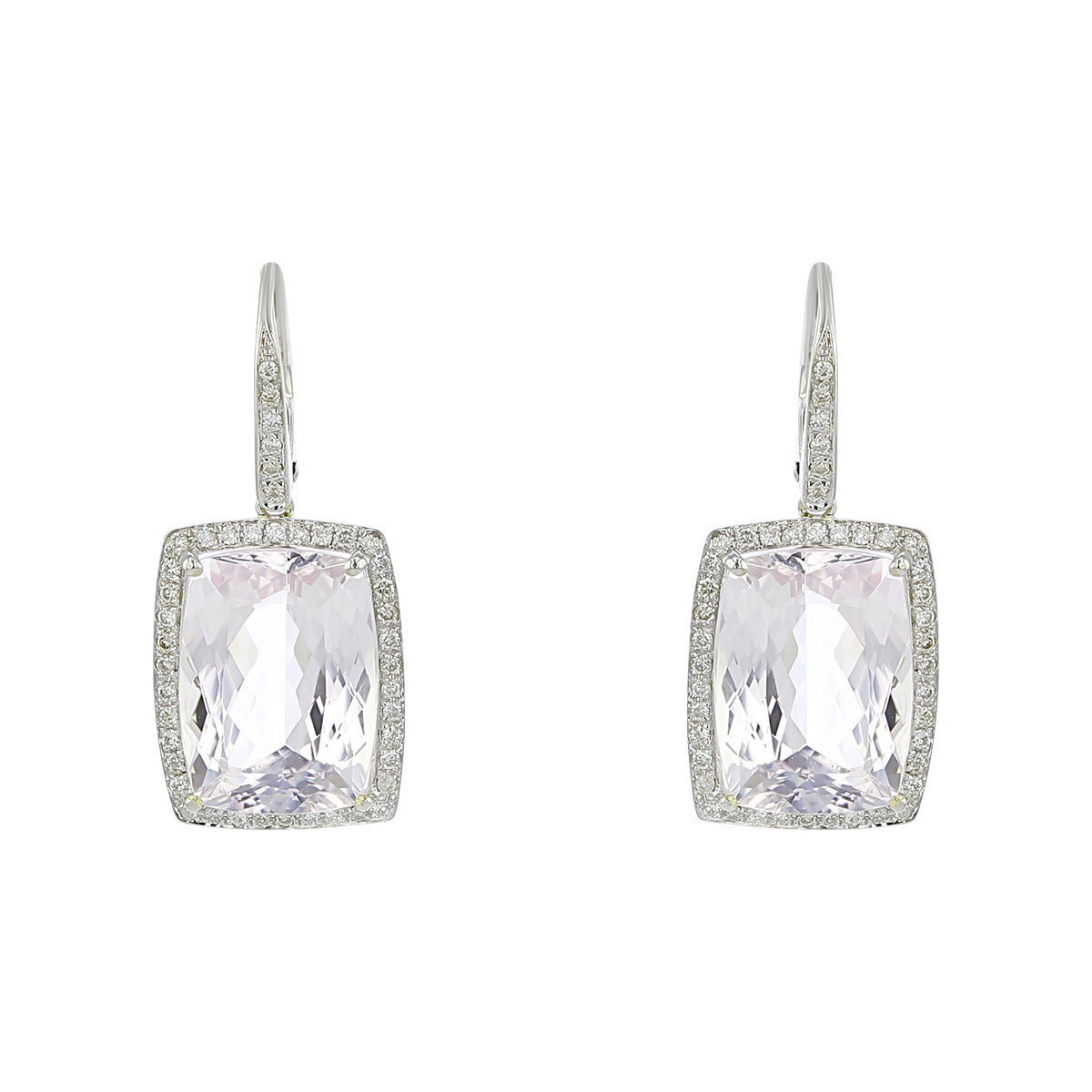 18K White Gold Kunzite and Diamond Halo Drop Earrings