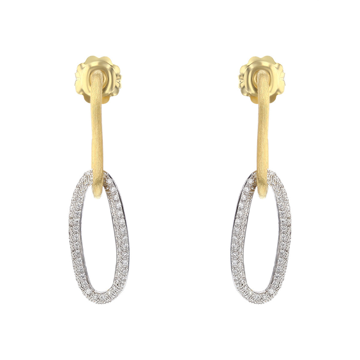 18K Yellow and White Gold Oval Link Diamond Dangle Earrings