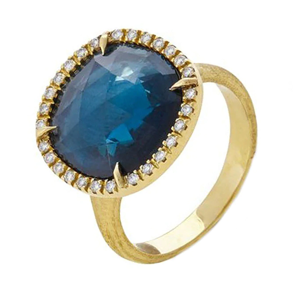 18K Yellow Gold London Blue Topaz and Diamond Medium Ring