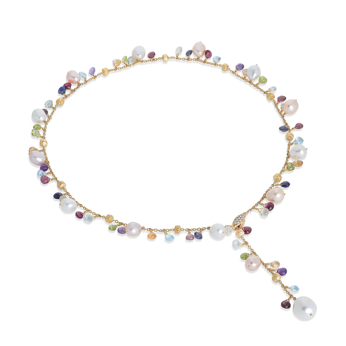 18K Yellow Gold Mixed Gemstone and Pearl Lariat Necklace