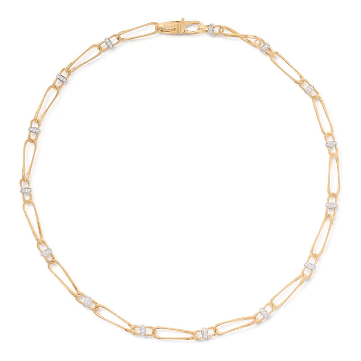 18K Yellow Gold Twisted Coil Link Necklace With Diamonds