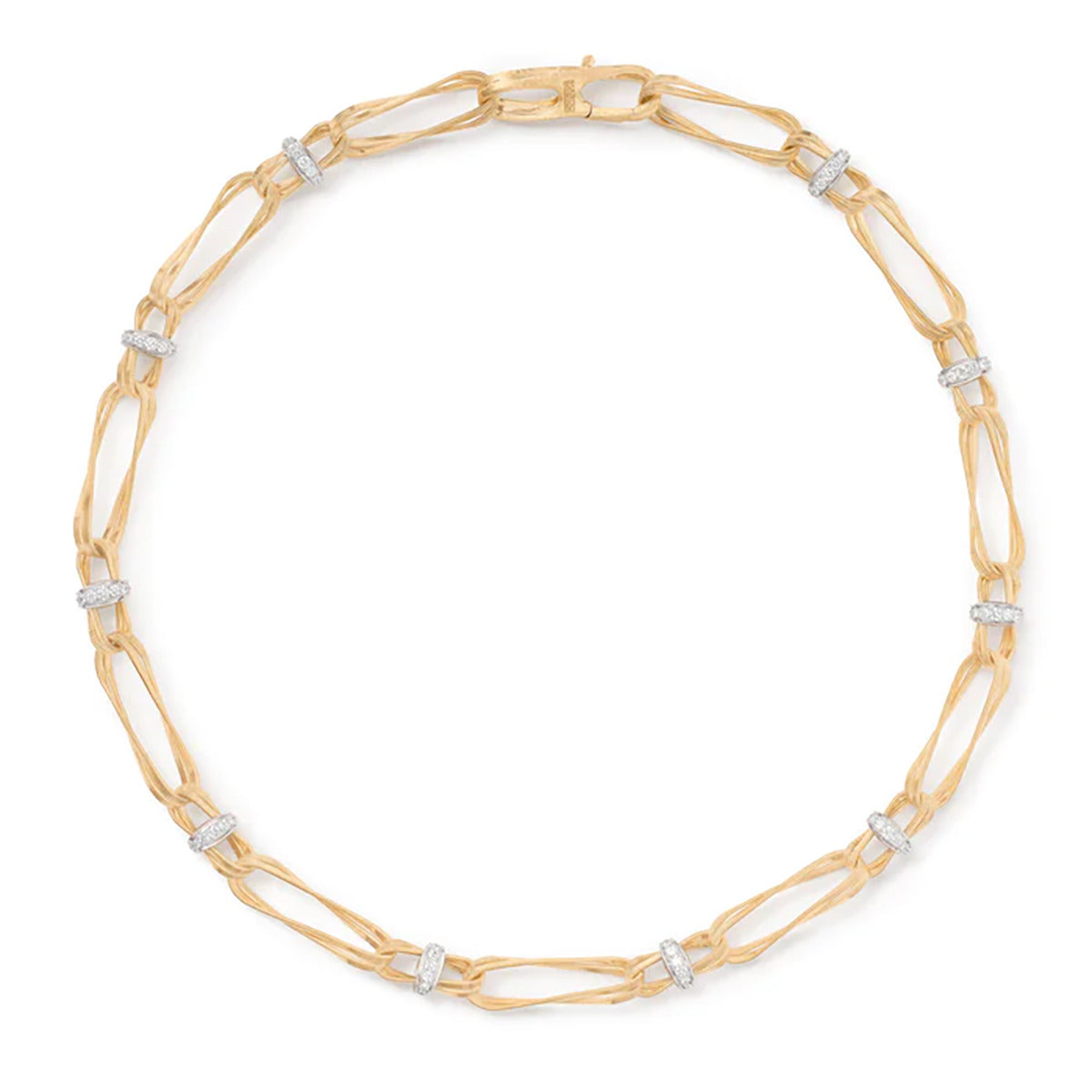 18K Yellow Gold Twisted Double Coil Link Necklace With Diamonds