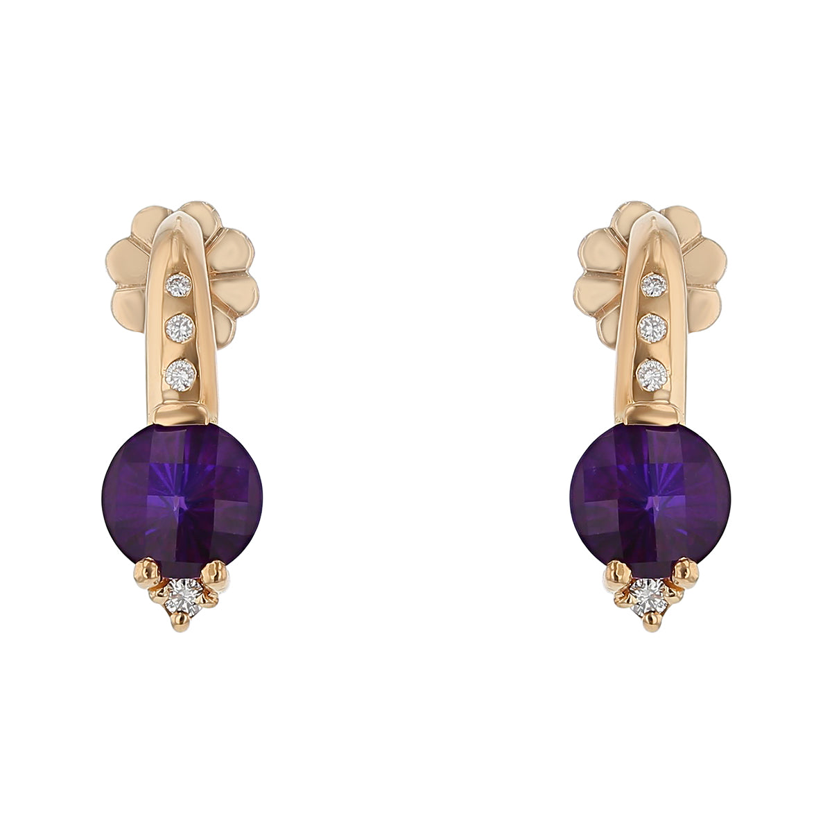 2.64ct Amethyst and 0.10ct Diamonds IJ/SI Drop Earrings in 18K Yellow Gold