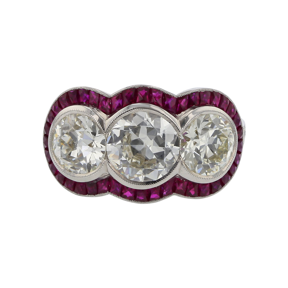 3.38ct Round Brilliant Diamonds G-H/VS and 3.31ct French Cut Ruby Ring in Platinum