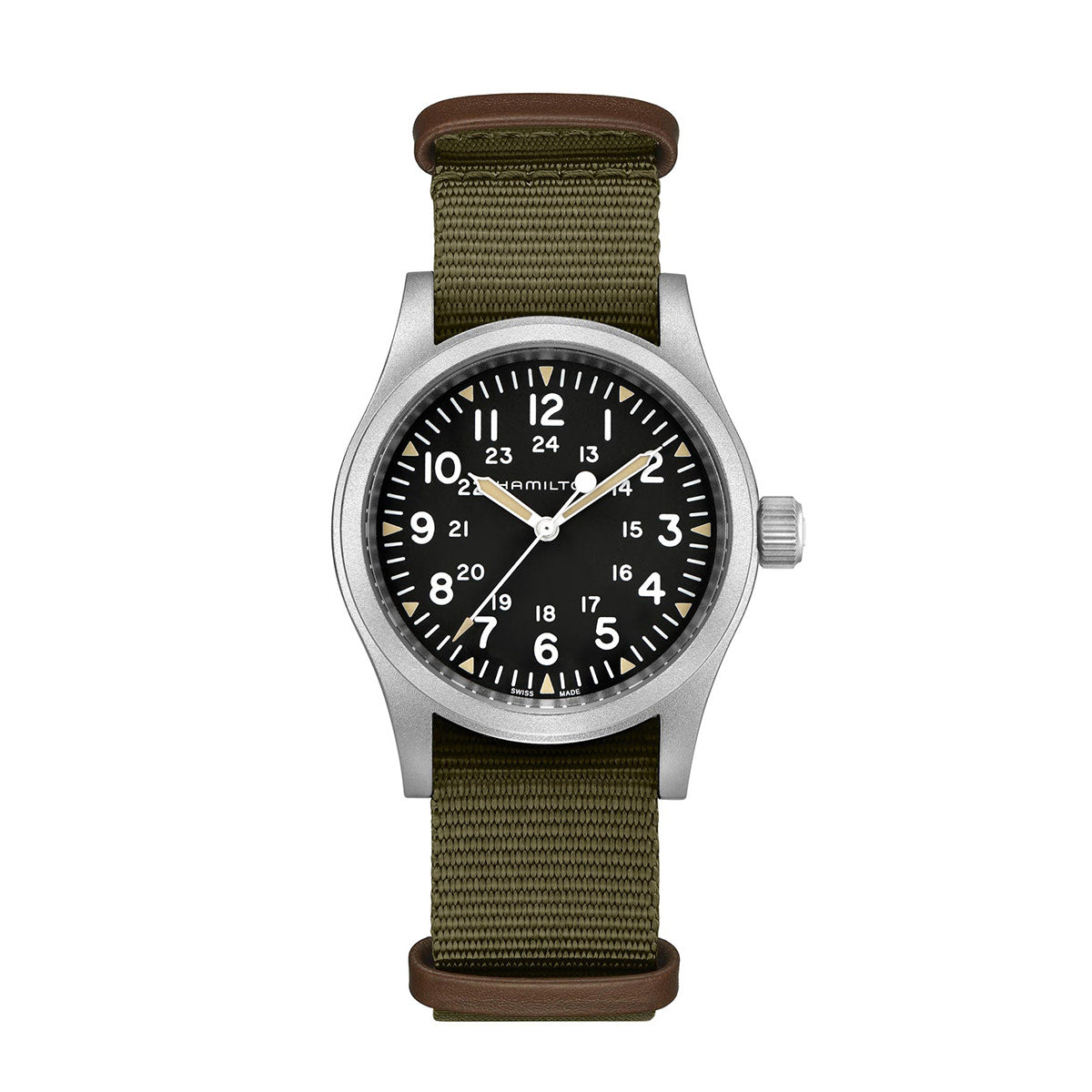 38mm Khaki Field Mechanical Watch with Black Dial in Stainless Steel, Strap
