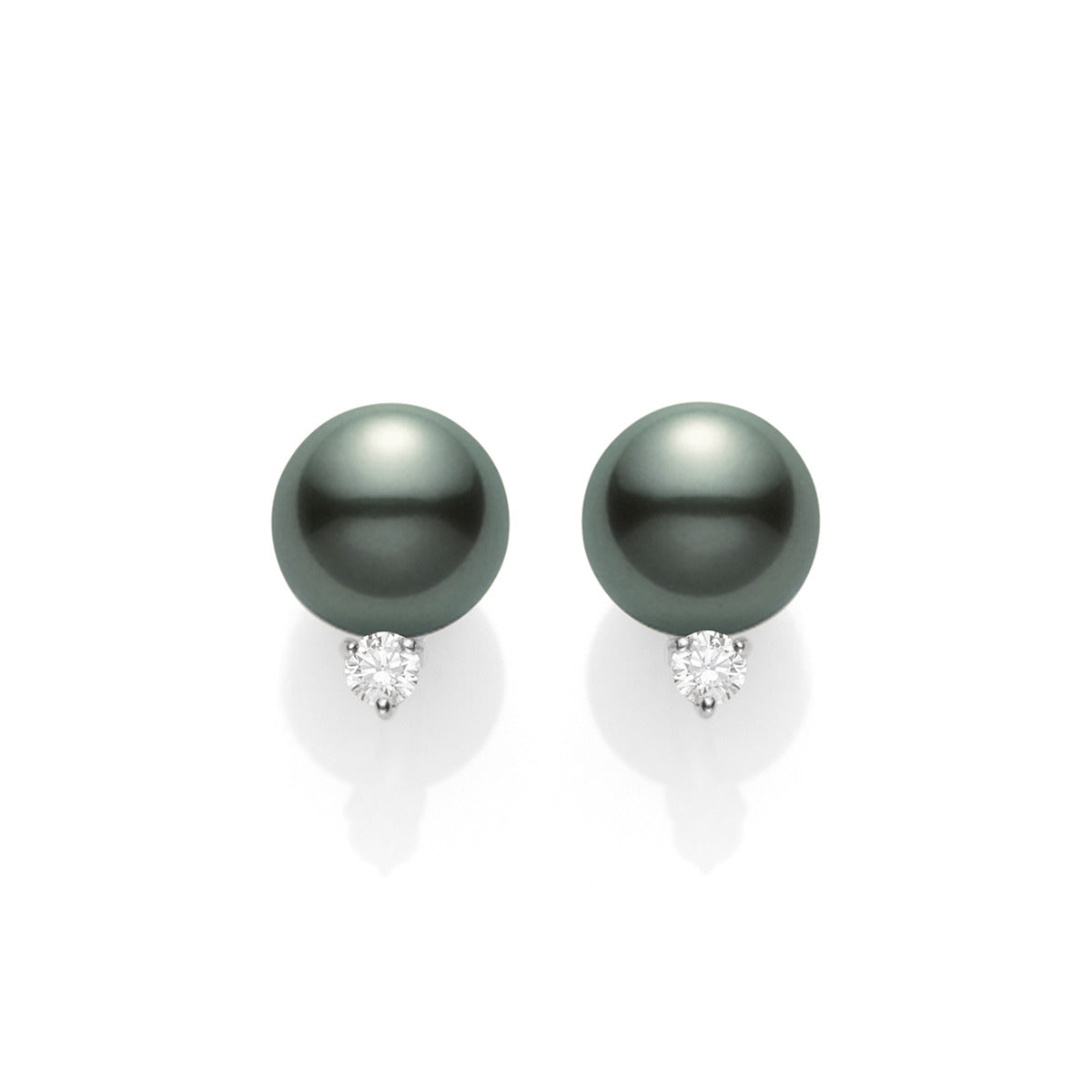 Black South Sea Cultured Pearl Stud Earrings with Diamonds