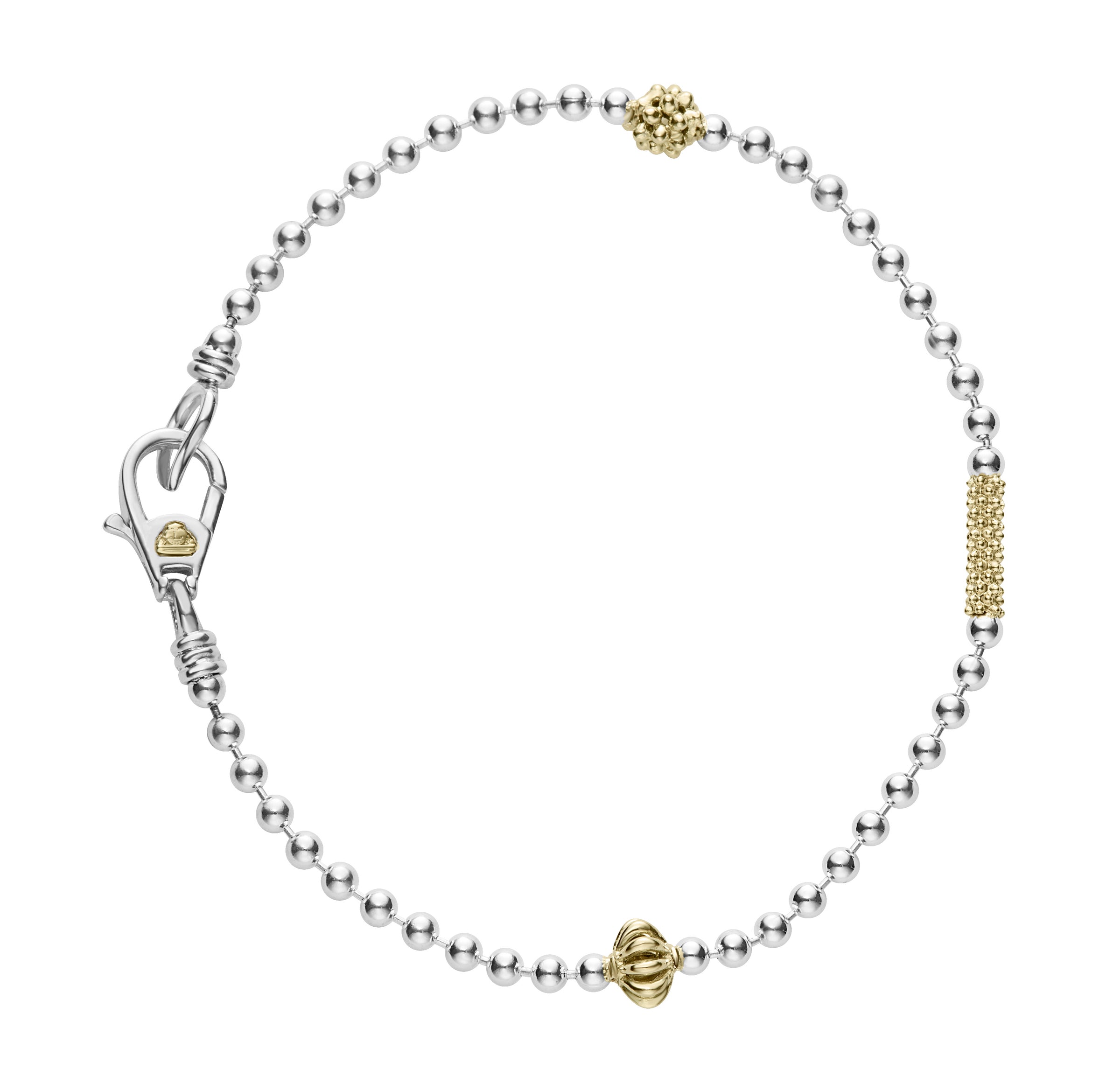 Caviar Icon Ball Chain Strand Bracelet in Sterling Silver and 18K Yellow Gold, Medium