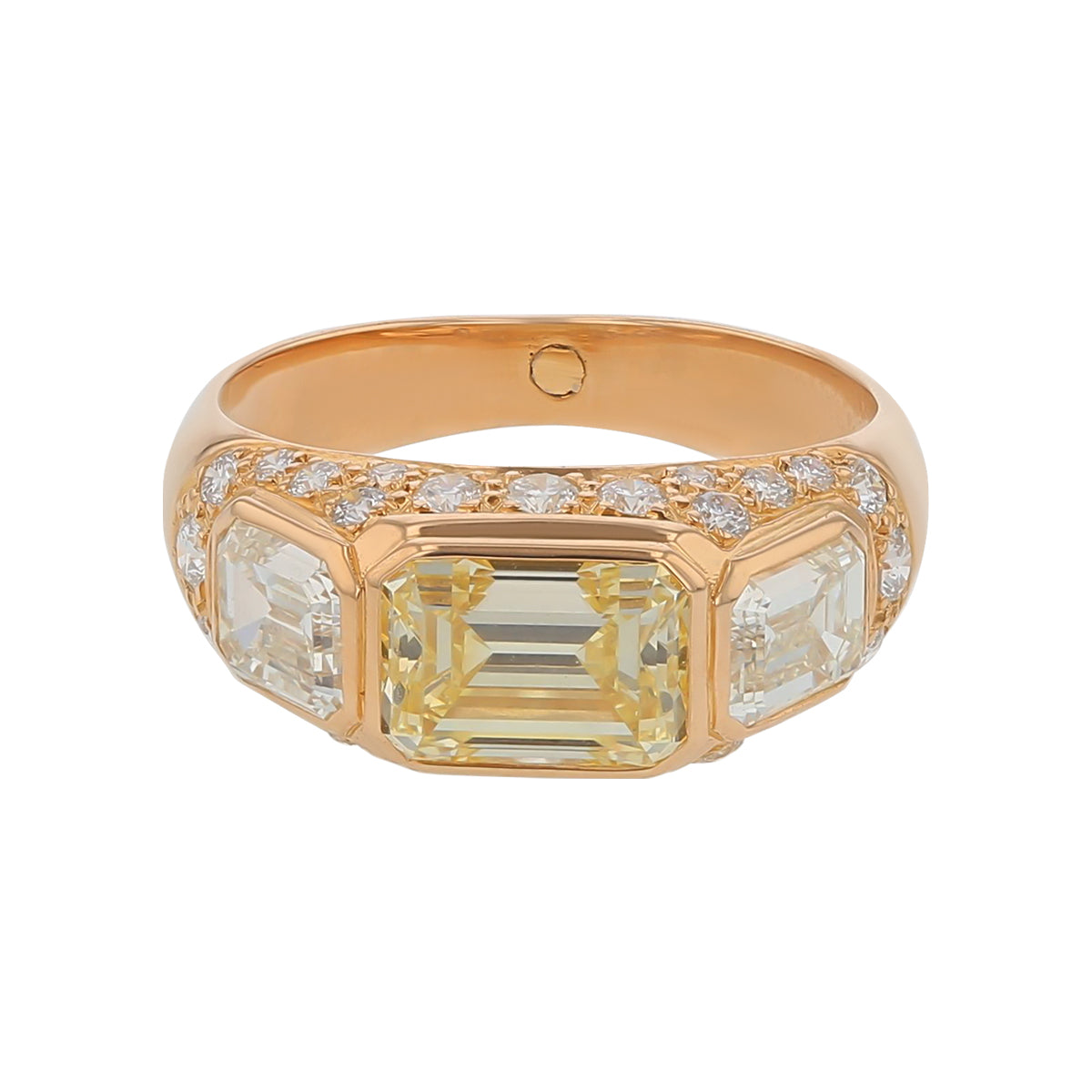 Gumuchian Flares 1.73ct Emerald Cut Diamond LY/VS1 and 1.48ct Diamond I/VVS1-VVS2 Ring in 18K Yellow Gold