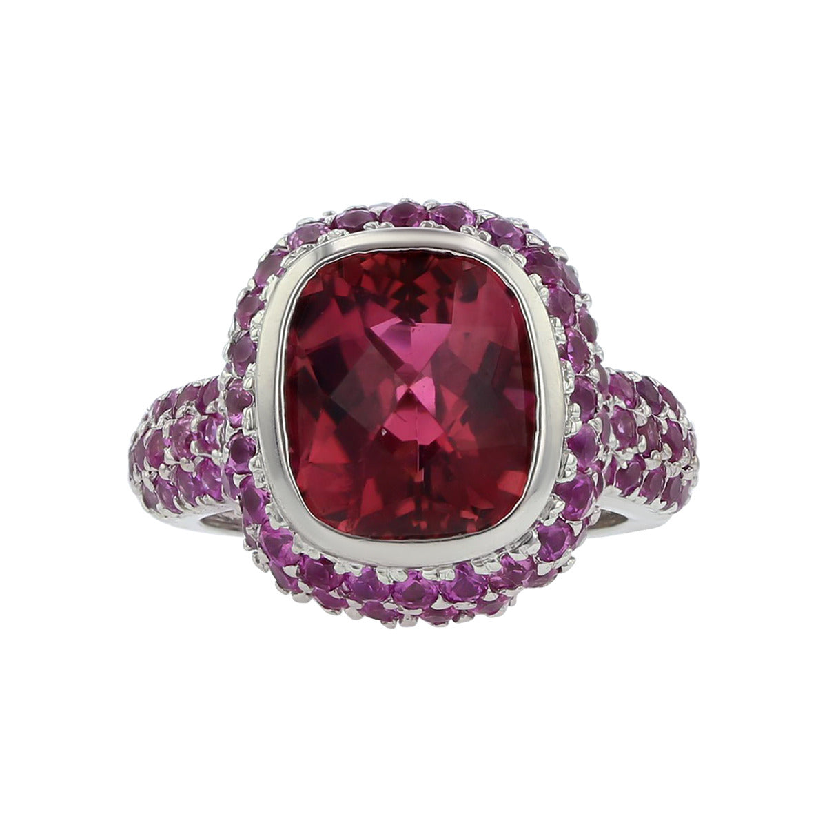 Pink Tourmaline and Pink Sapphire Halo Ring