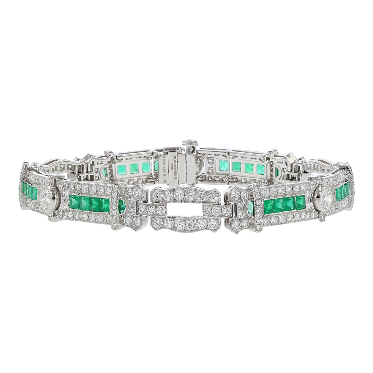 4.81ct Round Brilliant Diamond and 1.90ct Emerald Cut Emerald Bracelet in Platinum, 7"