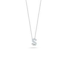 Tiny Treasures 0.05ct Diamond Love Letter "S" Pendant in 18K White Gold, 16-18" chain